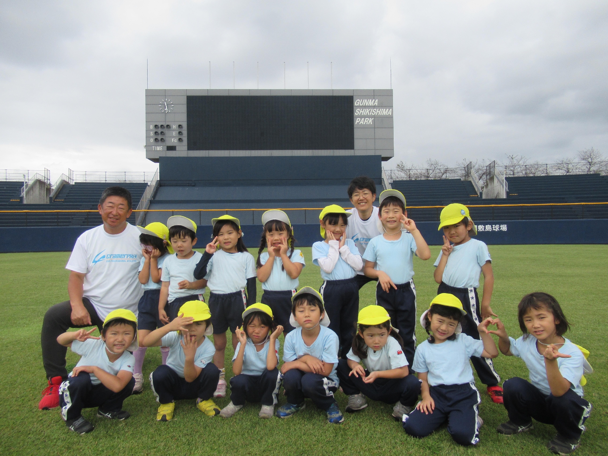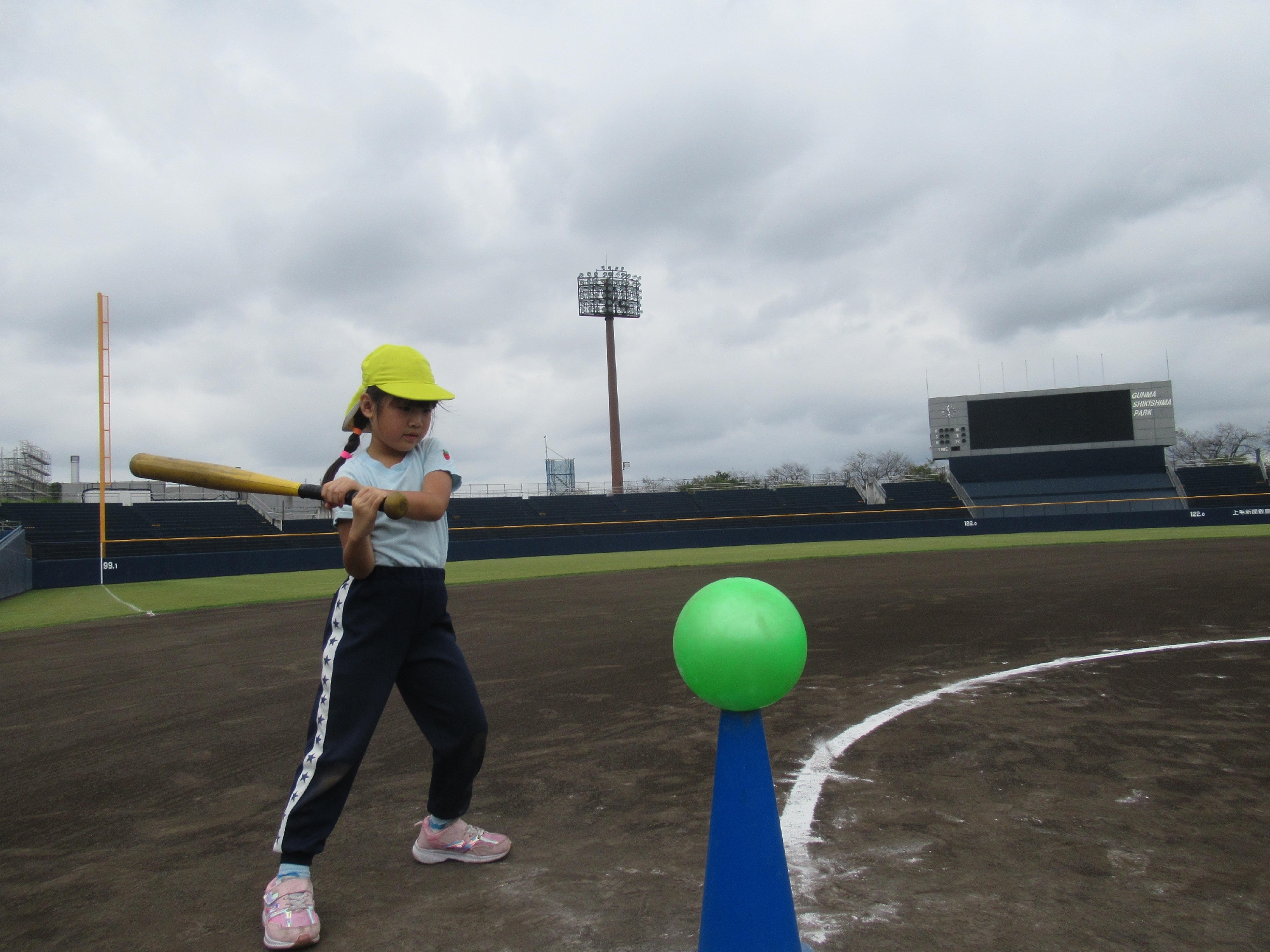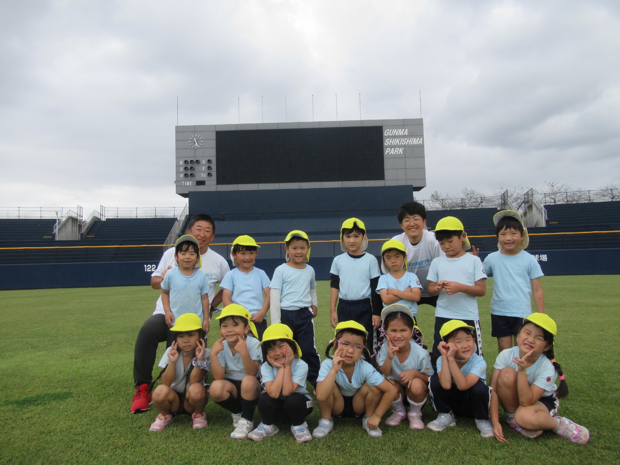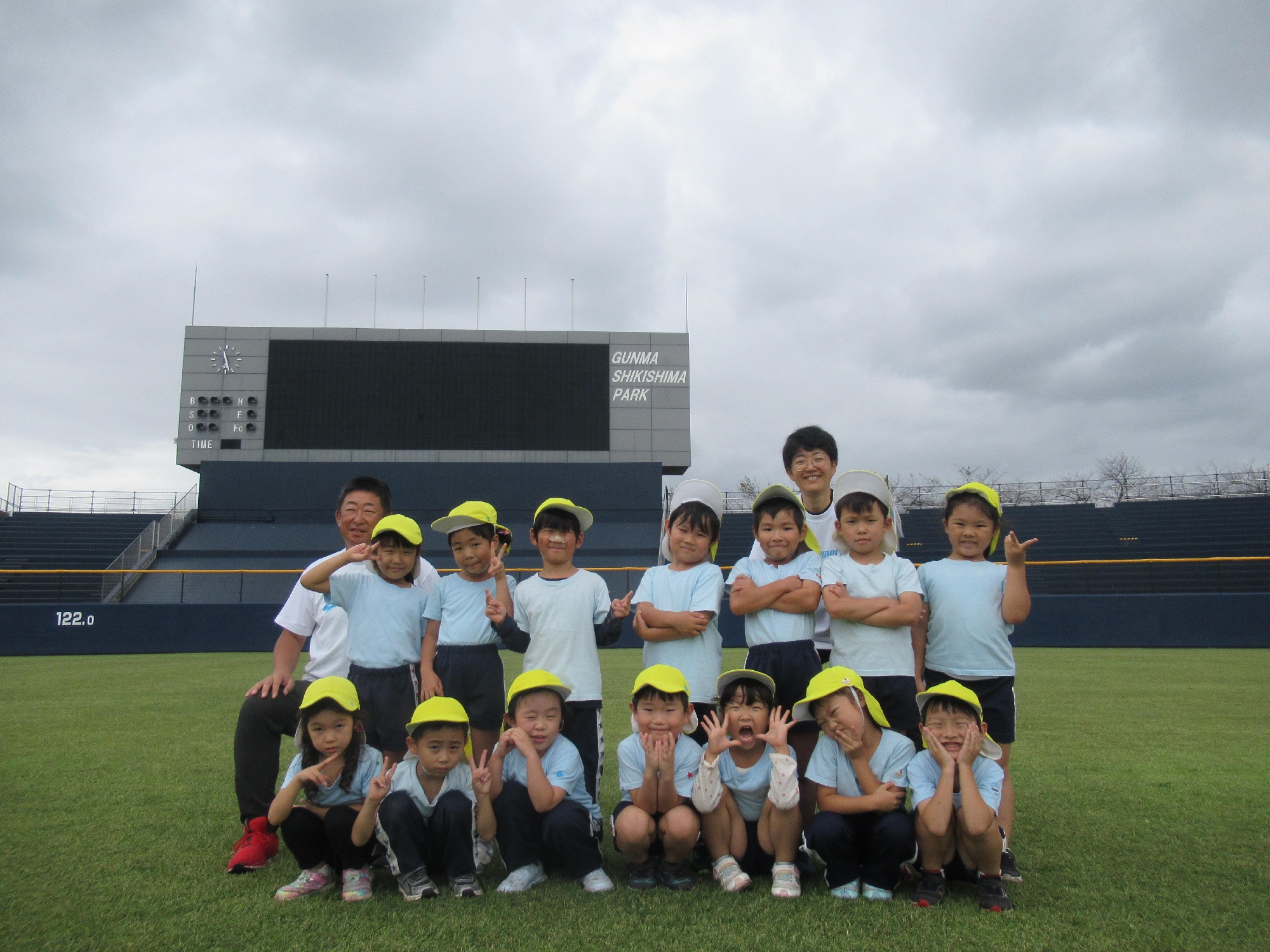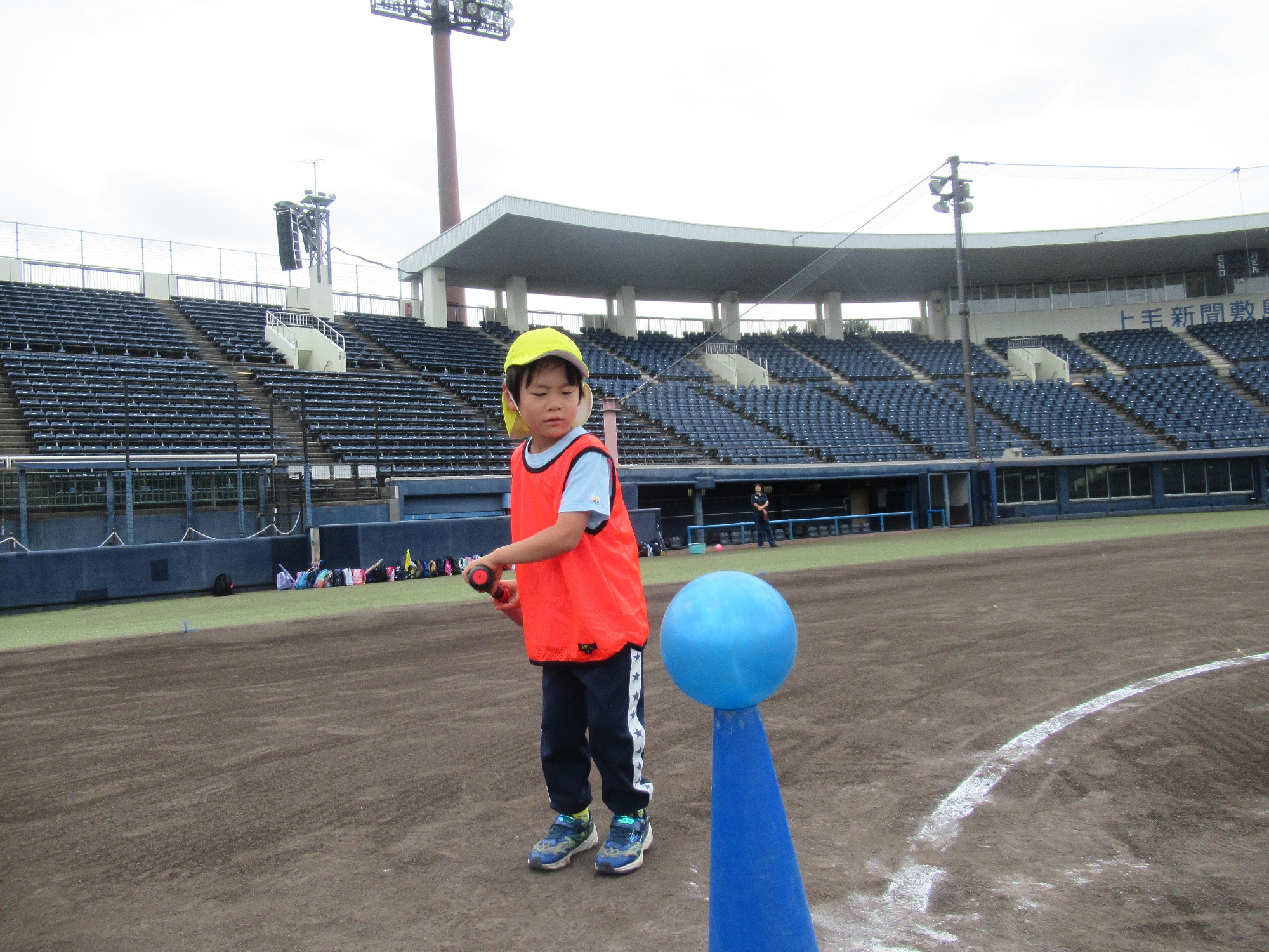 いつも体操教室でお世話になっているコーチと、敷島球場でたくさん体を動かしてきました。