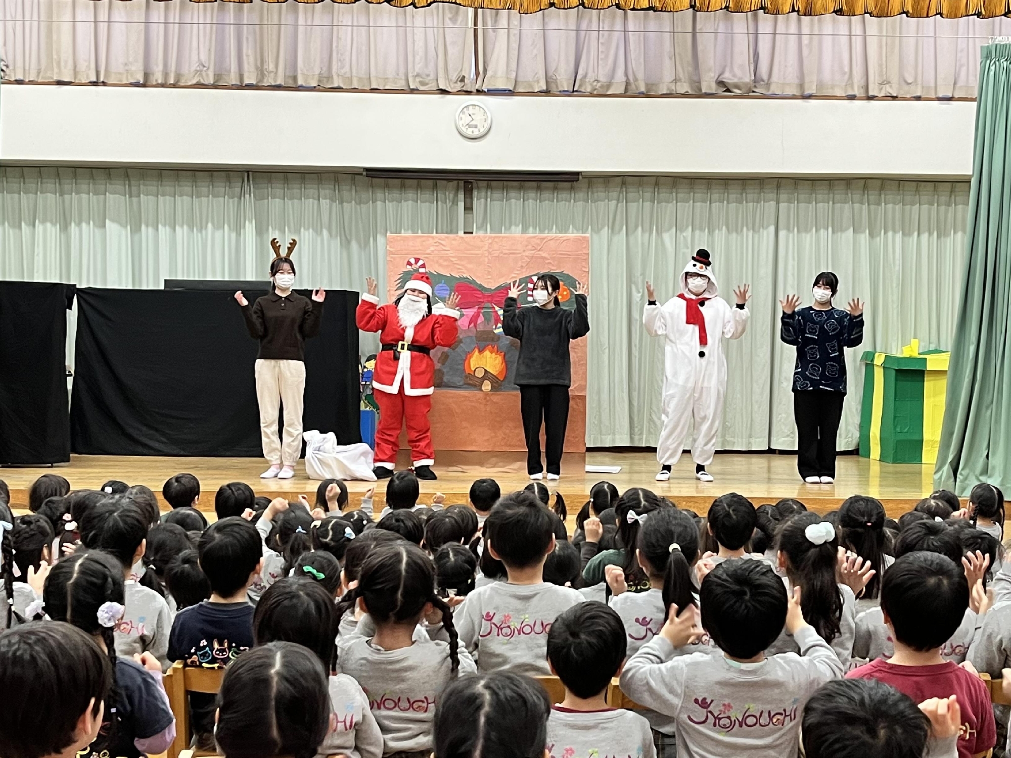 クリスマスを感じられるマジックショーやペープサート、ハンドベルの演奏など、楽しい出し物をたくさん披露してくれました。