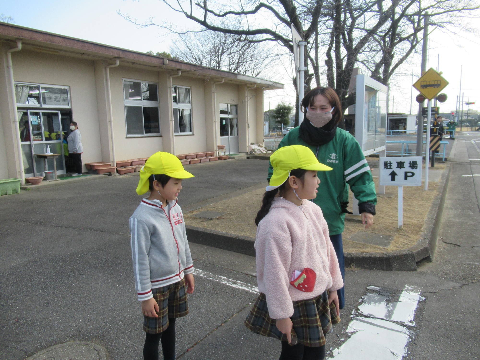 雪組、就学前に交通公園にて交通安全について学んできました。